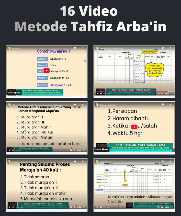 Anda Akan Mendapatkan 16 Video Step By Step Metode Tahfiz Arba’in :